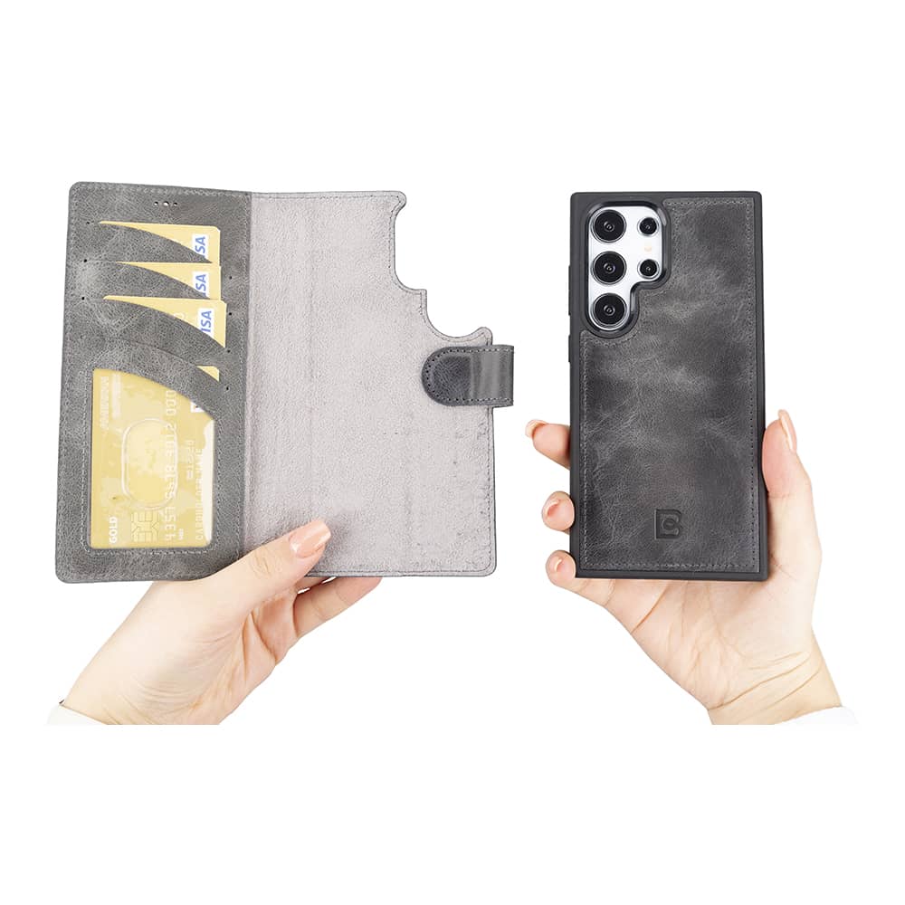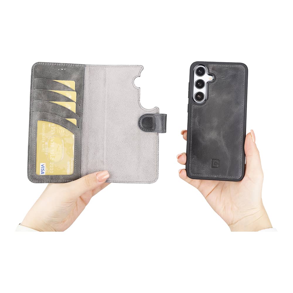 Samsung Galaxy S24 Serisi için RFID Cüzdanlı Çıkarılabilir Deri Kılıf