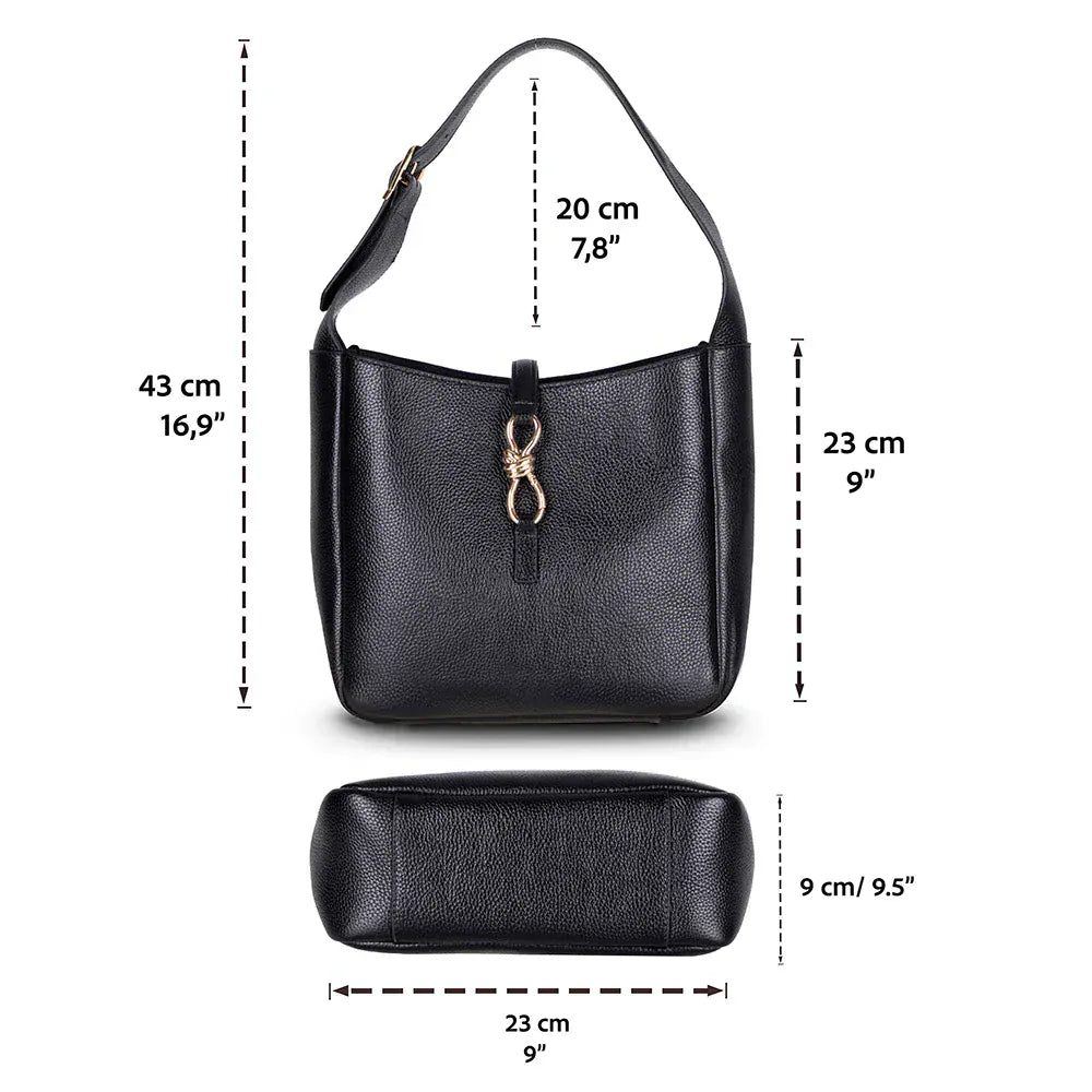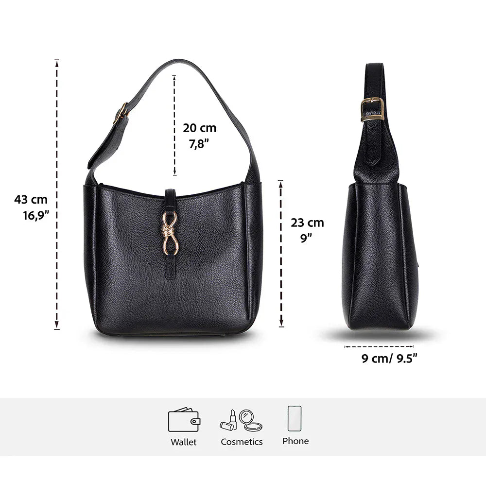 Timeless style awaits with our Azura Genuine Leather Shoulder Bag—the modern classic merges sleek style with practical details for everyday living. Made from the highest-quality genuine leather, it boasts a soft, textured appearance and an eye-catching gold-tone clasp, adding a luxurious touch. An adjustable shoulder strap and roomy interior make it ideal for the office, weekends, or a night out.
