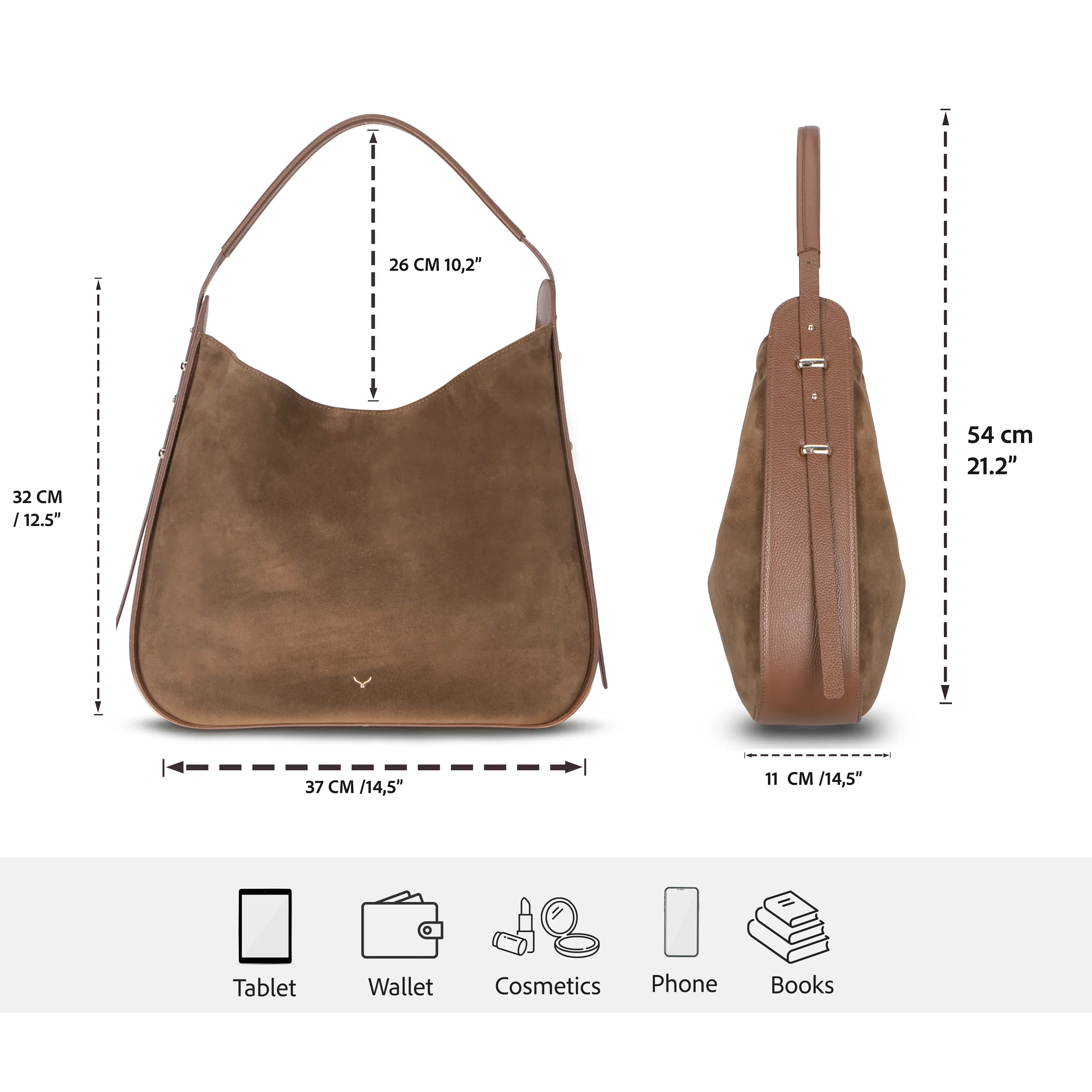 Created with the modern woman in mind, our Tote Bag exudes refined elegance. Crafted from a sophisticated blend of genuine suede leather, this bag gently balances texture with structure. Whether for a casual brunch or an evening out, this shoulder bag is the perfect addition to any outfit: clean lines, elegant texture, and versatility.