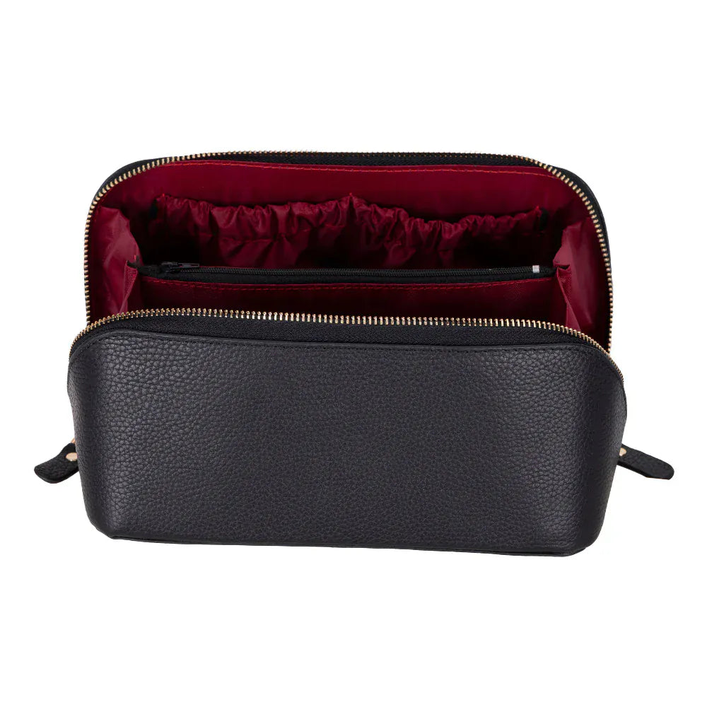 - Spacious design accommodates toiletries, cosmetics, and valuable items