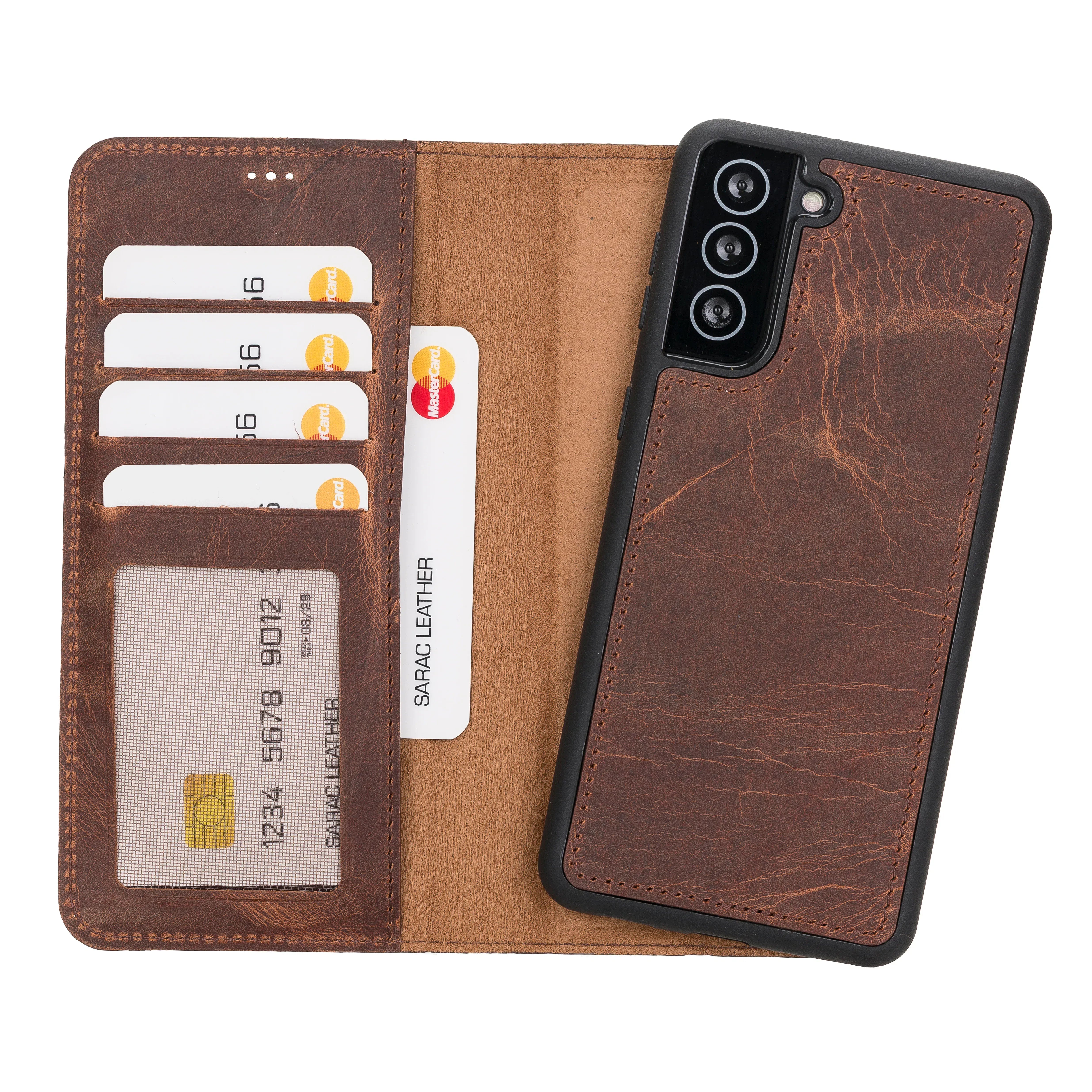 This genuine leather case offers style and protection for your Samsung Galaxy S21 Plus. It includes card slots, making it both practical and elegant