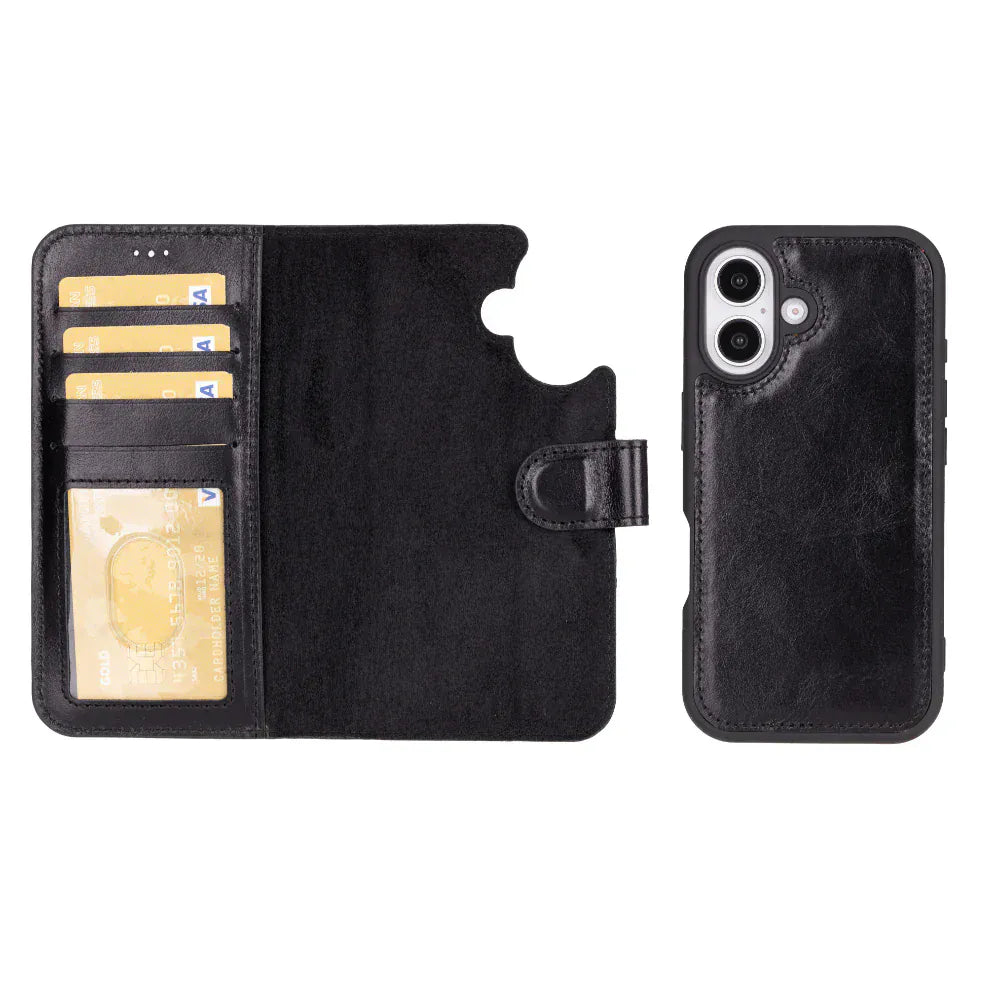 This genuine leather case offers style and protection for your iPhone 16. It includes card slots, RFID security, and supports MagSafe charging, making it both practical and elegant