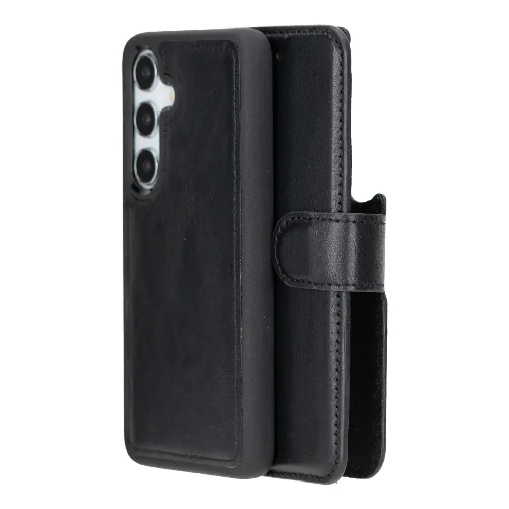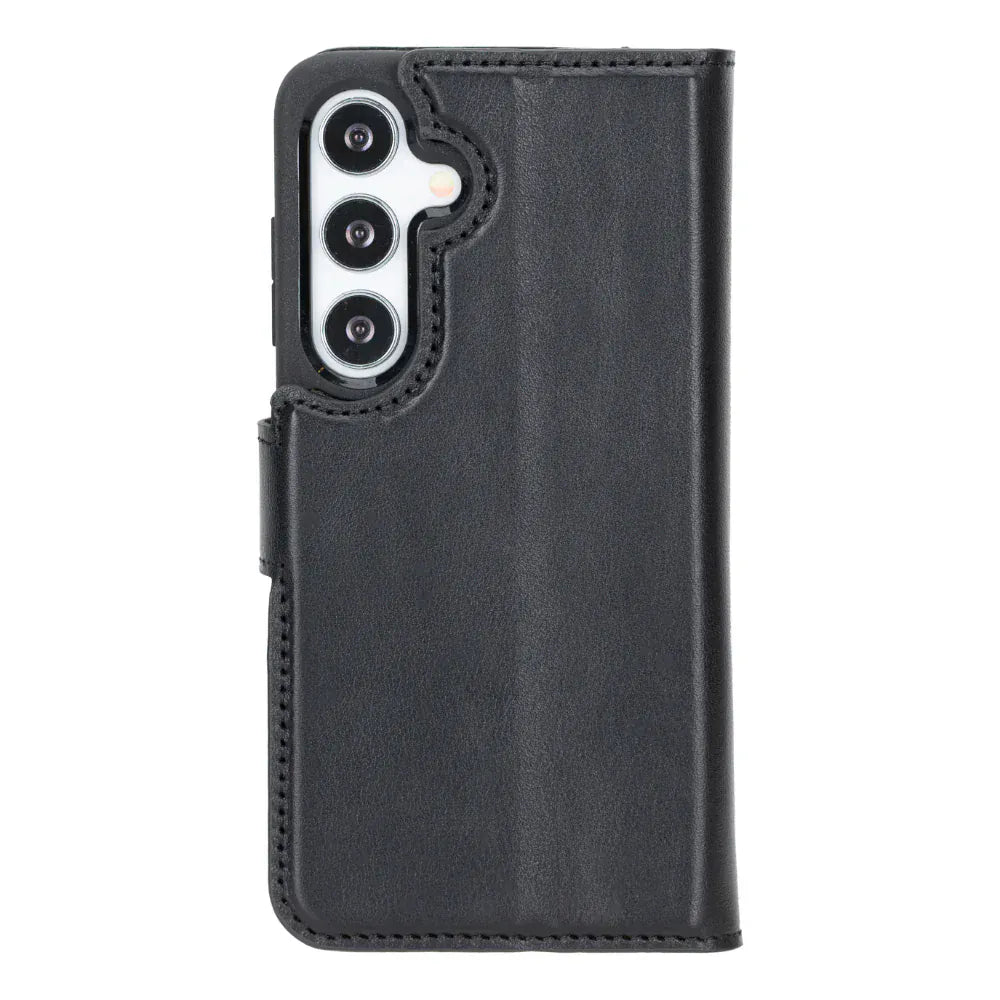 This genuine leather case offers style and protection for your Samsung Galaxy S25. It includes card slots, RFID security, and supports wireless charging, making it both practical and elegant