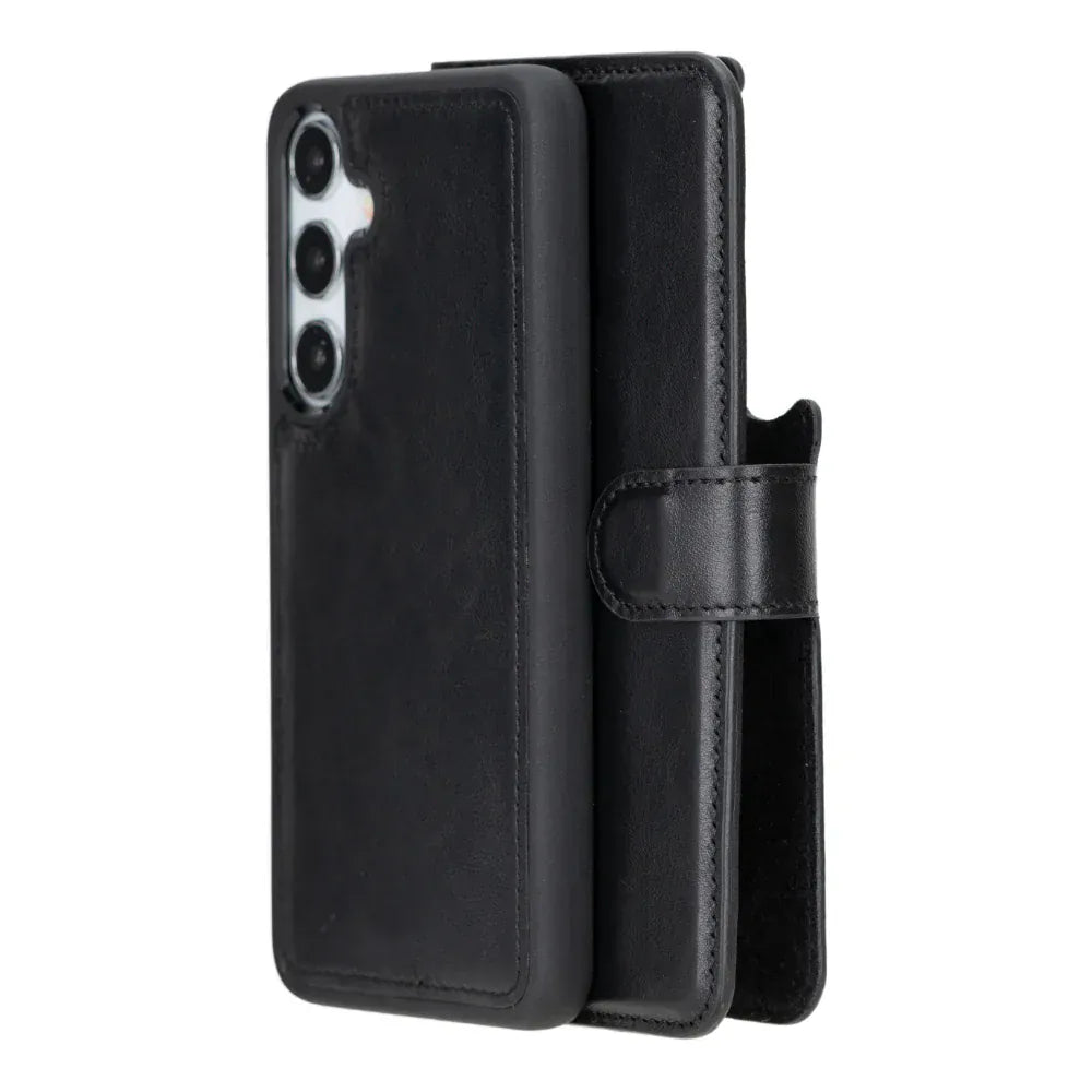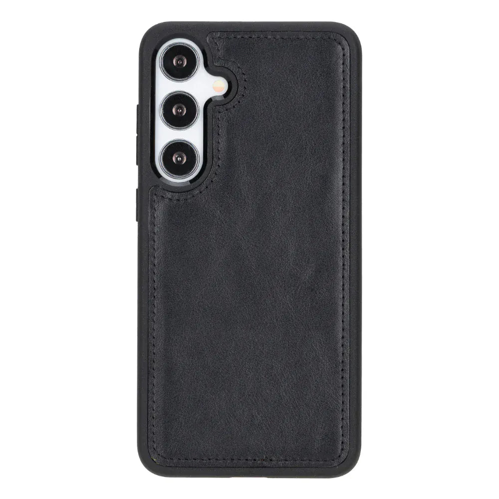This genuine leather case offers style and protection for your Samsung Galaxy S25 Plus. It includes card slots, RFID security, and supports wireless charging, making it both practical and elegant
