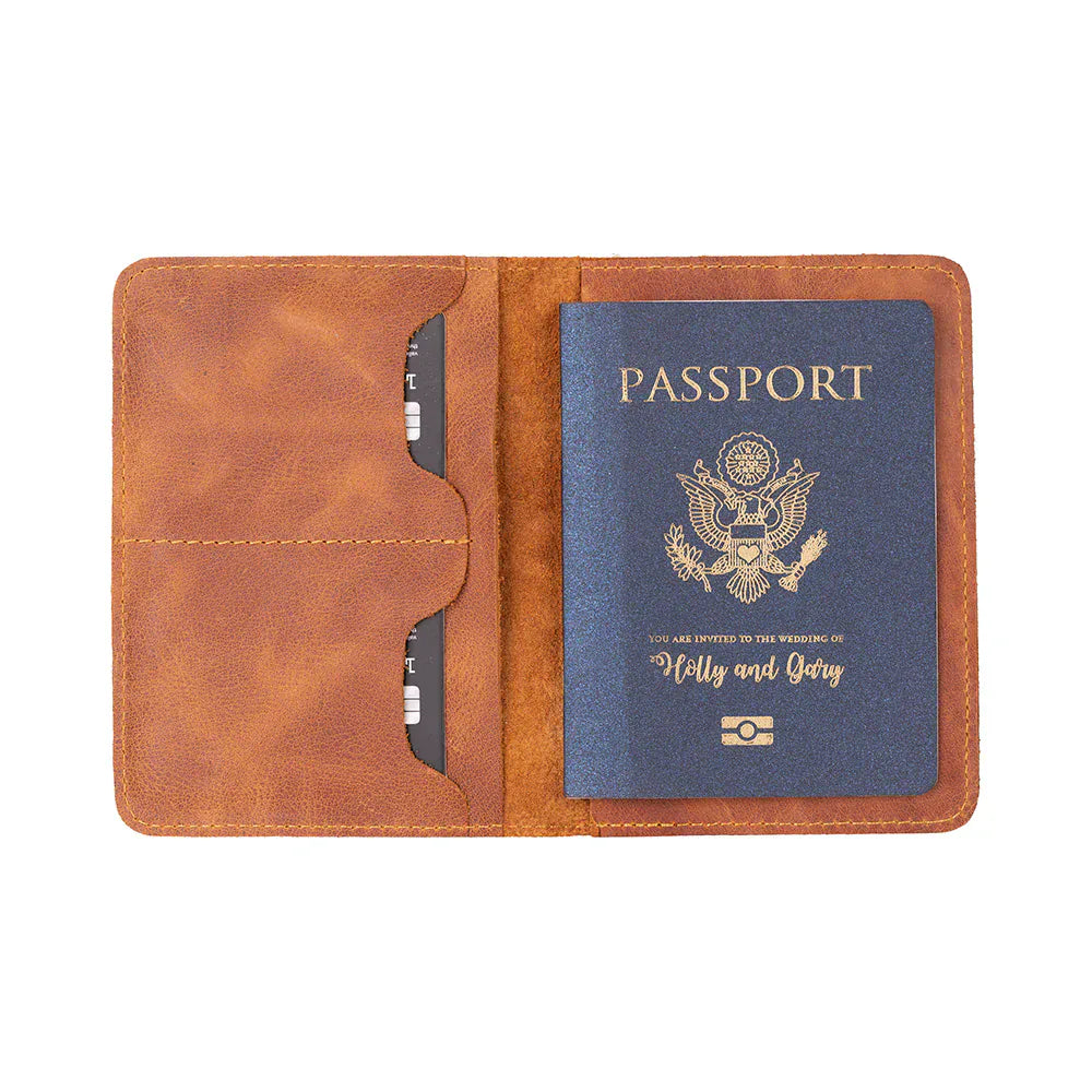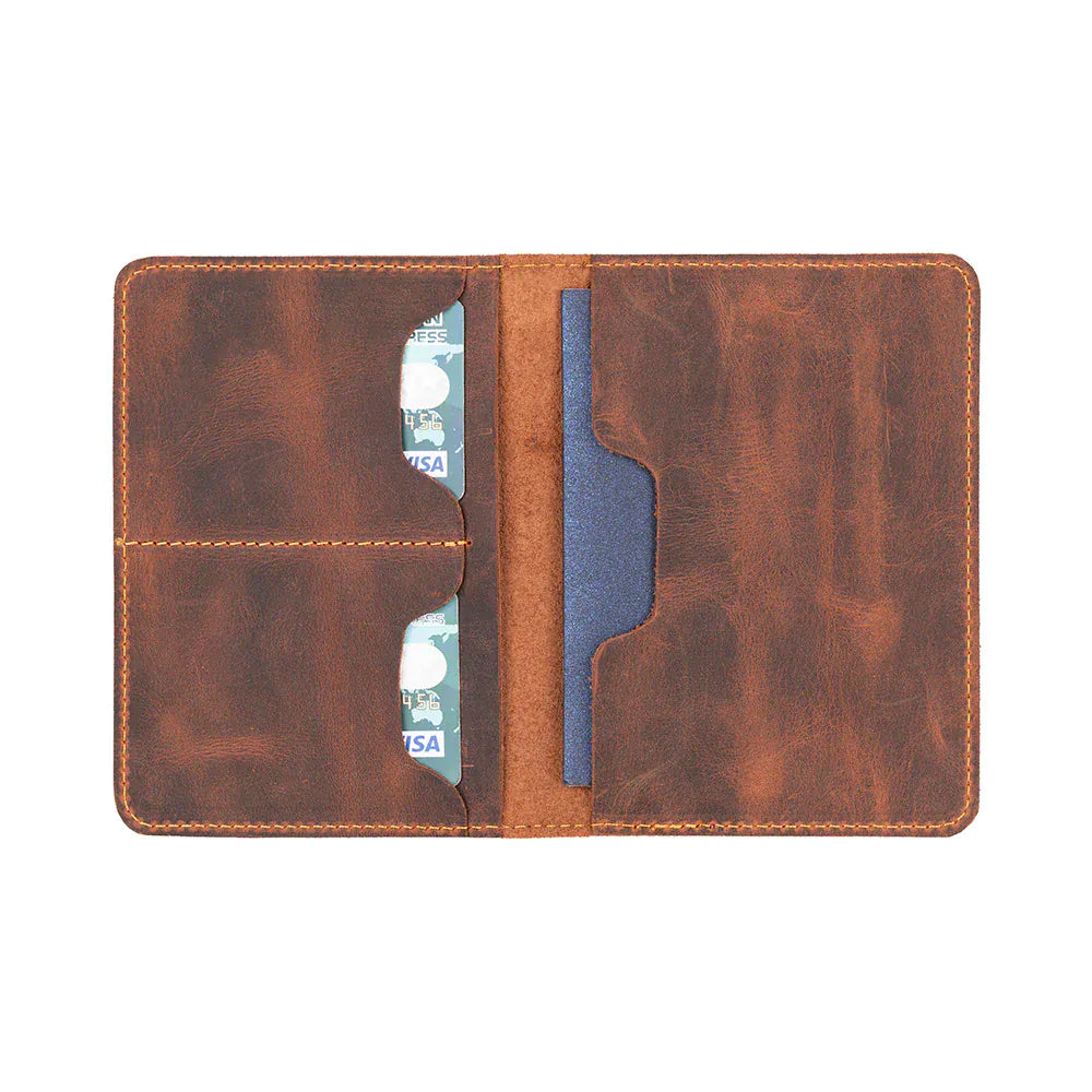 This genuine leather passport holder made by hand is ideal for traveling in style. It provides your passport, cash, and cards with secure and well-arranged storage within its special compartments